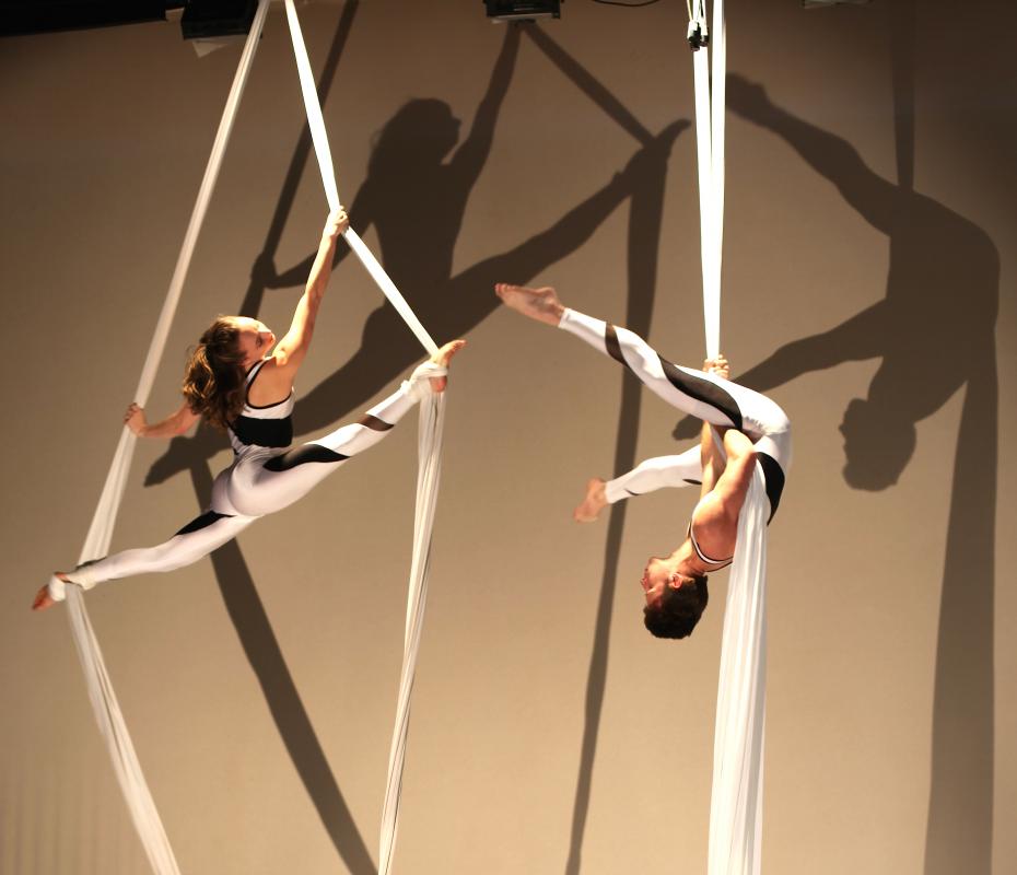 The concert will open with a series of repertory pieces created by Bala Sarasvati, which demonstrates an array of technical dance abilities on bungee, single point lyra, silks and slings, along with sustained physical partnering and the incorporation of film animation.