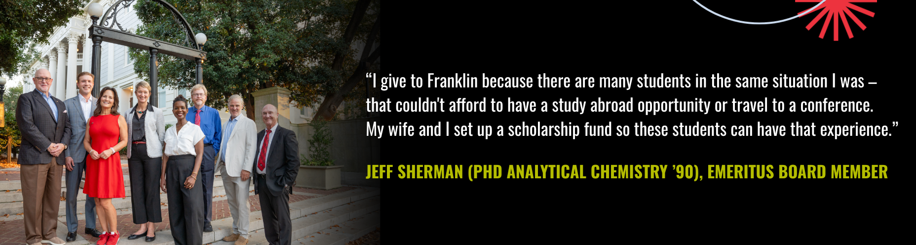Thank you for your support for Franklin College. Contributions from alumni and friends are critical to maintaining our core missions of teaching and research. Gifts are tax deductible.