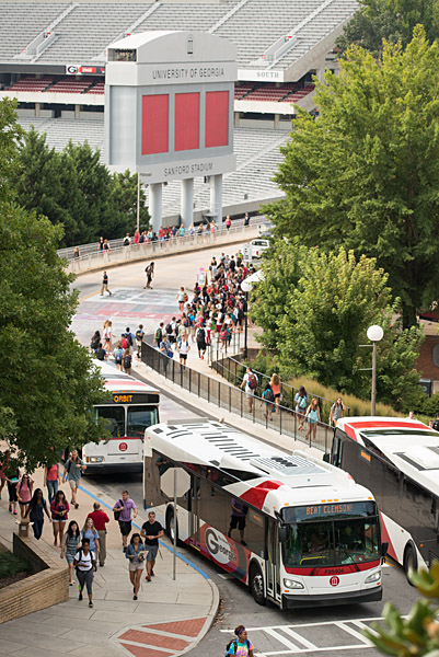 Image: students near Memorial Hall on the first day of fall semester 2014, courtesy of UGA photo services.