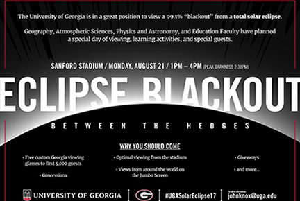 The first 5,000 in attendance at Sanford Stadium will receive free custom Georgia viewing glasses to watch the eclipse. Views from around the world of the solar eclipse will be featured on the stadium’s video board.