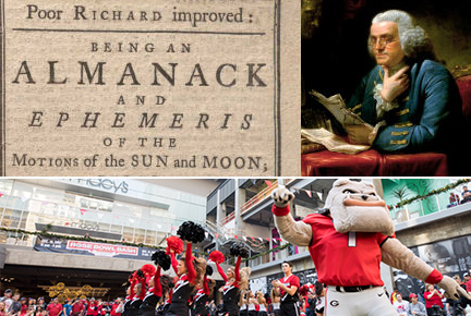 - Benjamin Franklin, from the 1755 edition of “Poor Richard’s Almanac.” Complete title: “Poor Richard improved: Being an Almanack and Ephemeris of the Motions of the Sun and Moon; the True Places and Aspects of the Planets; the Rising and Setting of the Sun, And The Rising Setting and Southing of the Moon.”