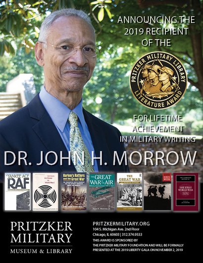 “I am truly honored to accept the 2019 Pritzker Military Museum & Library Literature Award for Lifetime Achievement in Military Writing,” said Dr. Morrow. “Receiving the award after nearly fifty years of historical writing, teaching, and consulting constitutes the ultimate affirmation of my career as a scholar of the history of modern war and society.”