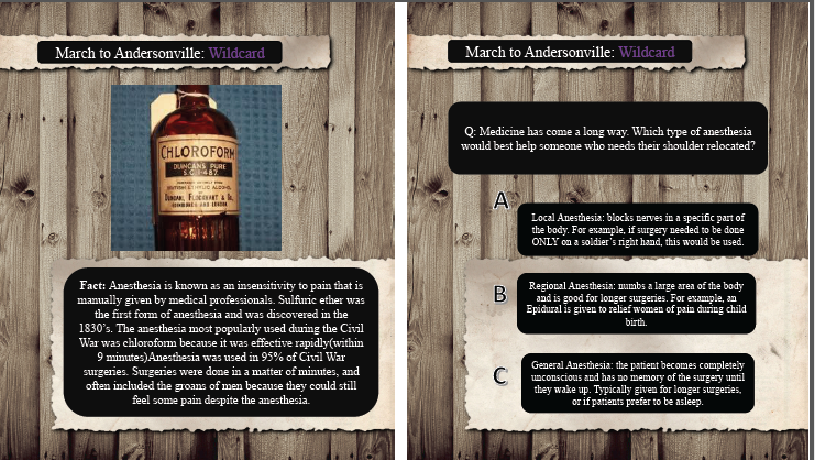 Image: screenshot of Daniela Murcia's Honorable Mention winning submission, March to Andersonville Prison: STEM Edition, which poses questions around “fun facts” in which science and history not only connect but intertwine in compelling ways.