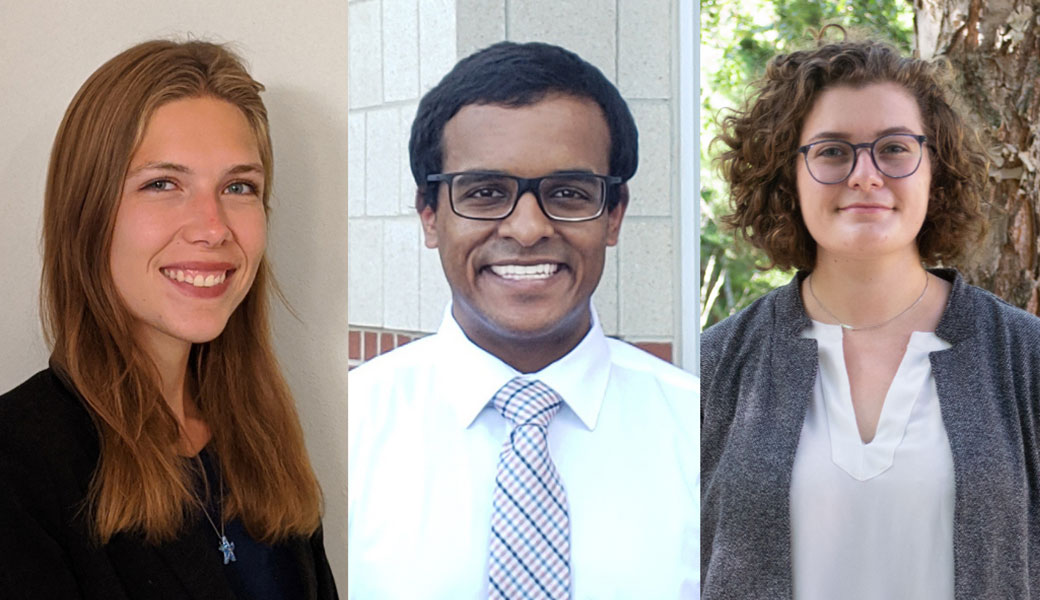 Image: The 2020 ARCS Scholars, from left, Alyssa Baugh, Liju Mathew and Katie Duval. (Photos by Abigail Butcher)