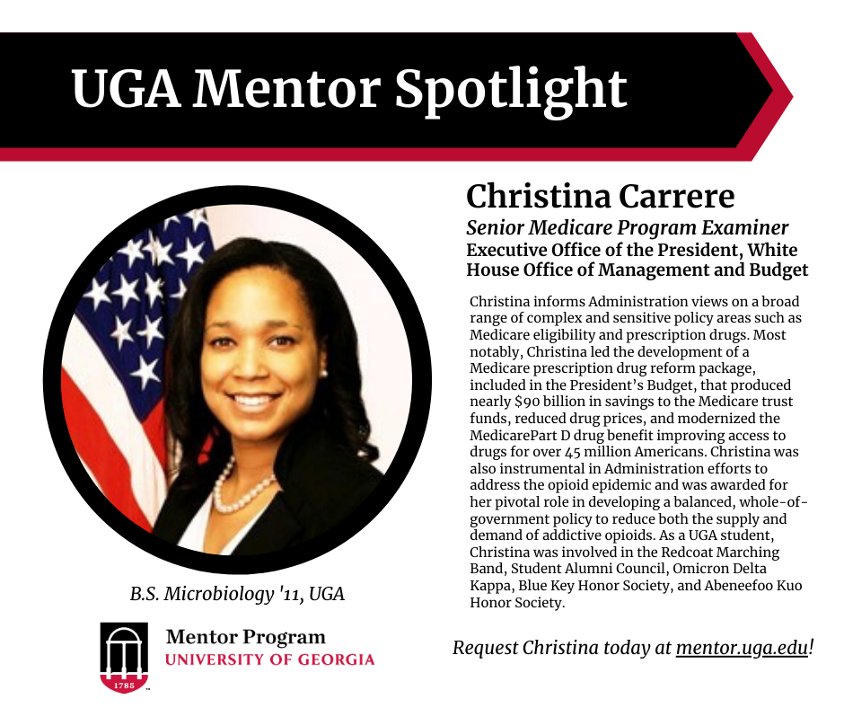 In the Mentor spotlight this week is Christina Carrere, Senior Medicare Program Examiner in the White House Office of Management and Budget.