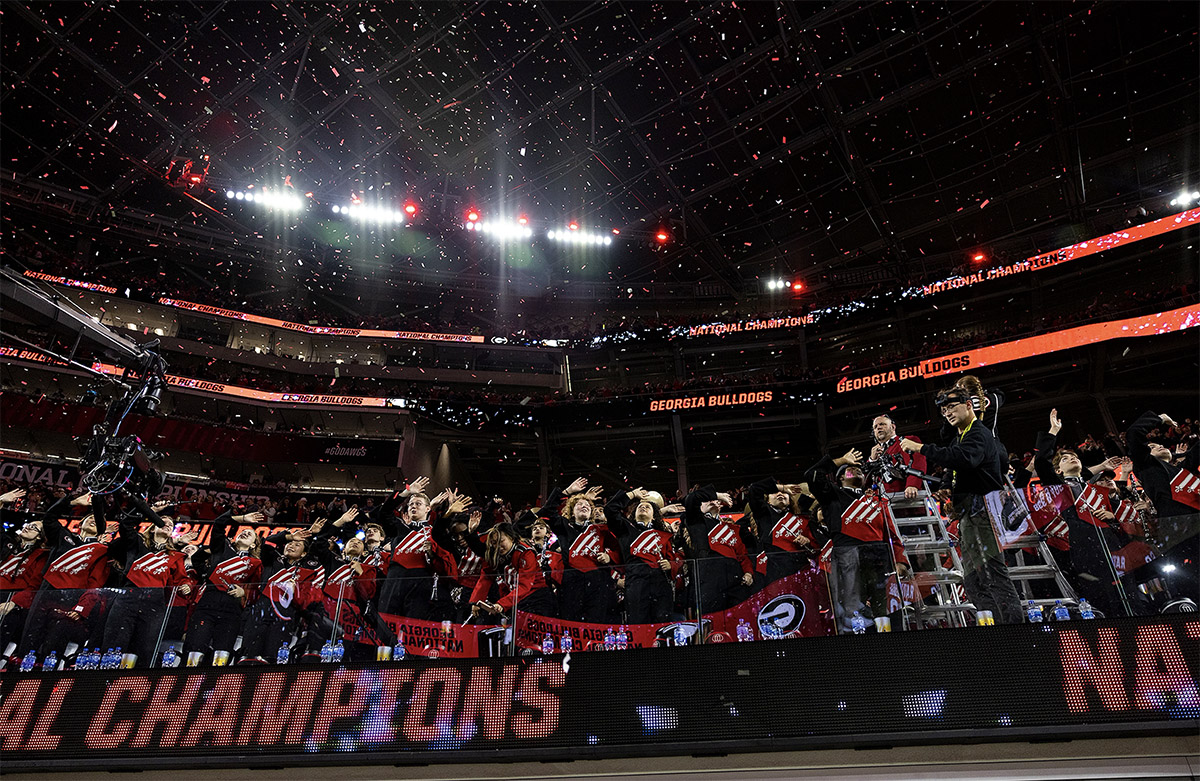 Image: Redcoats in the front row at the National Championship game.